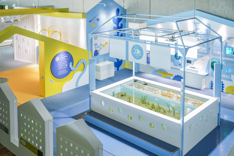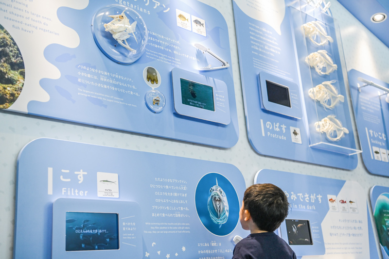 サメやエイにふれあいながら学べるコーナー「タッチンフィーリン」の終了にともない新たにオープンしたこの展示は、生き物との驚きや発見に満ちた出会いをお届けする内容となっています。生き物をより間近に感じられるしかけがいっぱいの展示を体験したり、スタッフがおこなう教育プログラムに参加したり、小さなお子さまから大人までお楽しみいただけます。これまで新型コロナウイルス感染症対策により教育プログラムは中止していましたが、このたびプログラムを開始し、本格オープンとなりました。