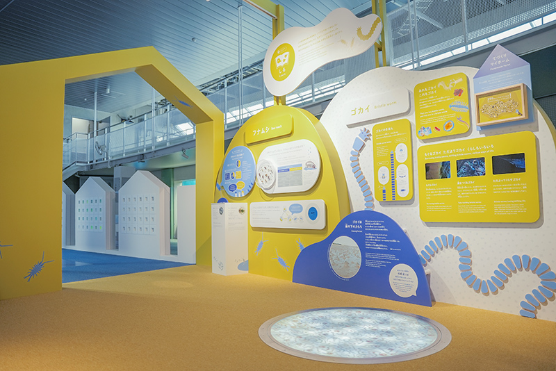 映像や標本などで、フナムシやゴカイの生態系での役割を学ぶことができます。ゴカイ研究者によるトーク映像もご覧いただけます。