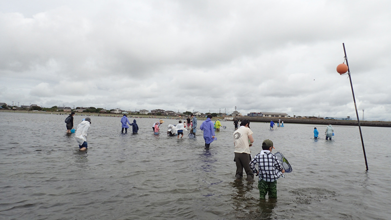 濡れてもよい服装と靴(古いスニーカーやマリンブーツなど)、着替え、帽子、タオル、熊手、砂抜き用の海水を入れるペットボトル、アサリを持ち帰るためのクーラーボックスやビニール袋など、飲み物