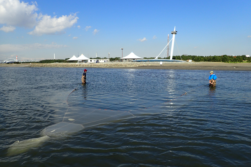 「干潟でバシャバシャ!? 地引き網!」では、小型の地引き網で生き物を採集するようすをライブ配信しながら、採れた生き物の特徴や生態について解説します。何が採れるかは当日のお楽しみ!