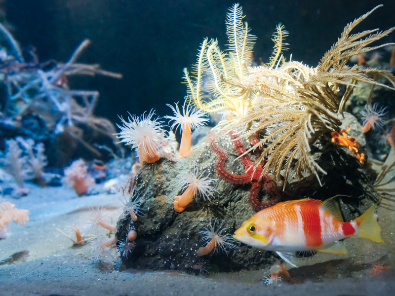 深海にはどんな生き物がいるの? 深海には、さまざまな姿形をした生き物がたくさんくらしています。標本を見ながら、深海の生き物の姿形をじっくり観察してみましょう。
