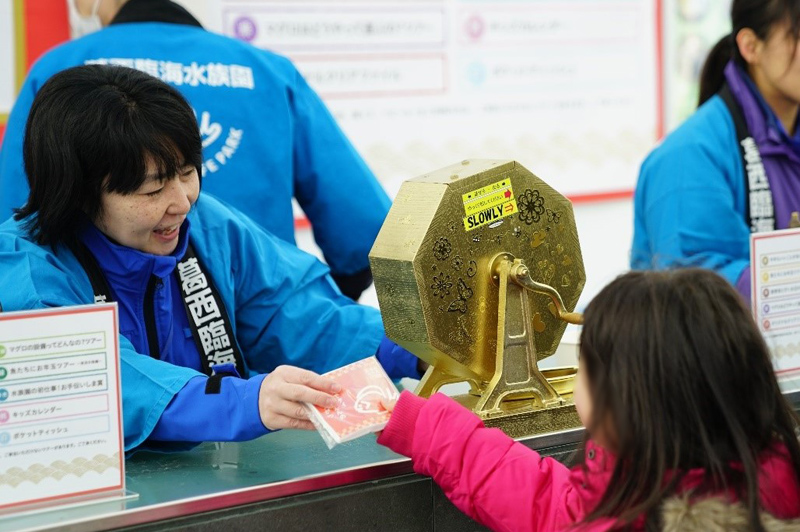 福引きの景品は、飼育の裏側がのぞける特別ツアーや水族園オリジナルグッズのプレゼントなど、水族園ならではのものをご用意しました。新春の運試し、挑戦してください!