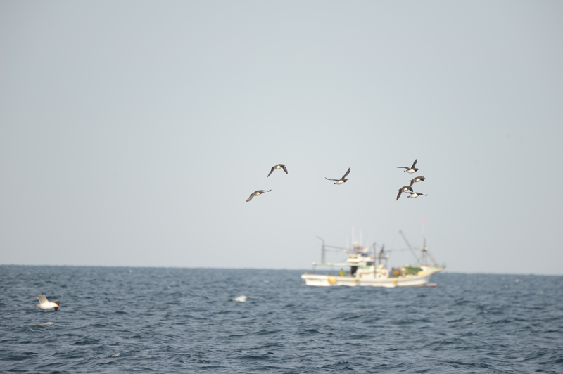 天売島で漁船の近くを飛ぶウミガラス (写真提供:青塚松寿氏) | ウミガラス (写真提供:青塚松寿氏) |