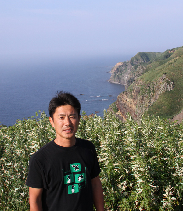 1973年北海道羽幌町天売島生まれ。小学3年生のとき、担任の先生の影響で野鳥観察を始める。高校卒業後島に戻り家業の運送会社に入社。2014年島の有志により一般社団法人天売島おらが島活性化会議設立。本業の傍ら島のPR活動以外にも、海岸清掃や野猫問題などの環境問題にも取り組む。 |  齊藤暢氏 |