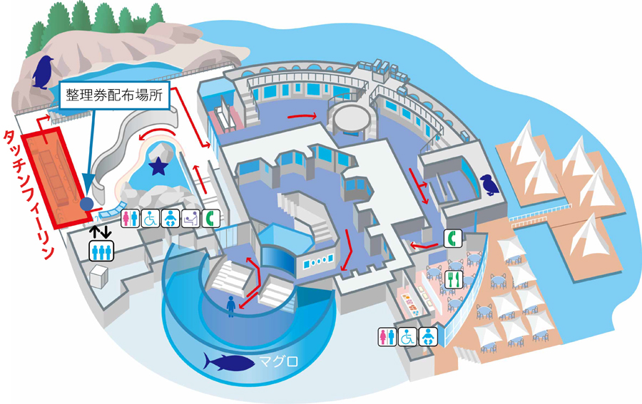 ※水族園正門からタッチンフィーリン開催場所まで、おとなの方でも徒歩15分かかります。