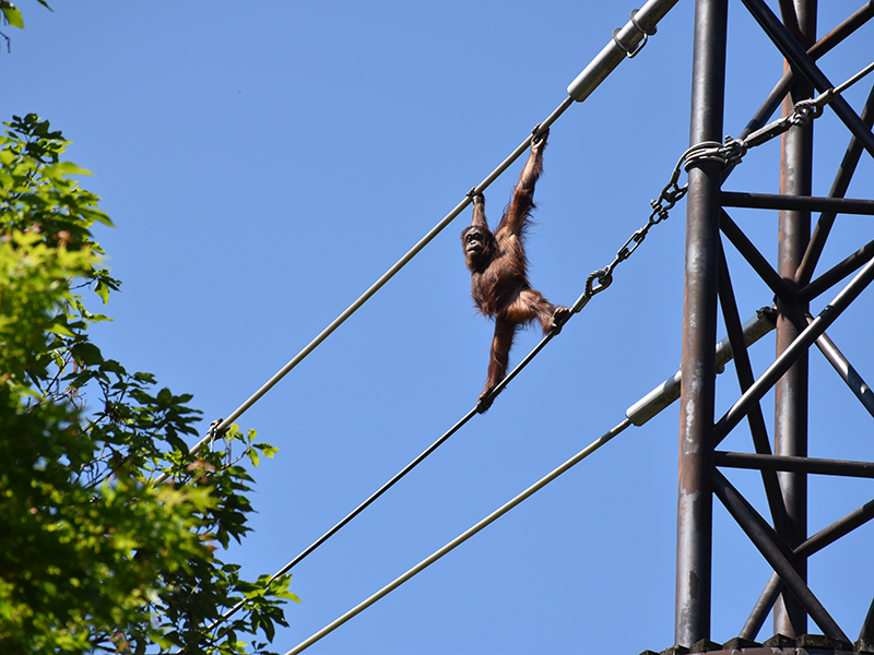 スカイウォークを渡るオランウータン