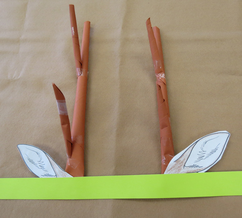 色紙をつかってニホンジカの角をつくります。ニホンジカを観察してから、角をつくってみましょう!