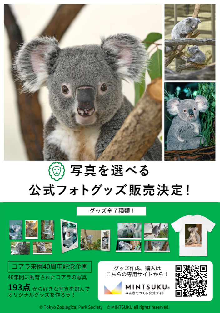 「多摩動物公園公式 コアラ来園40周年記念 カスタムフォトグッズ」の受注販売