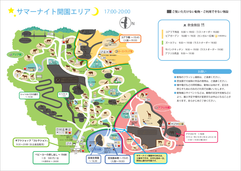(2)17時以降はご覧いただけない動物や施設