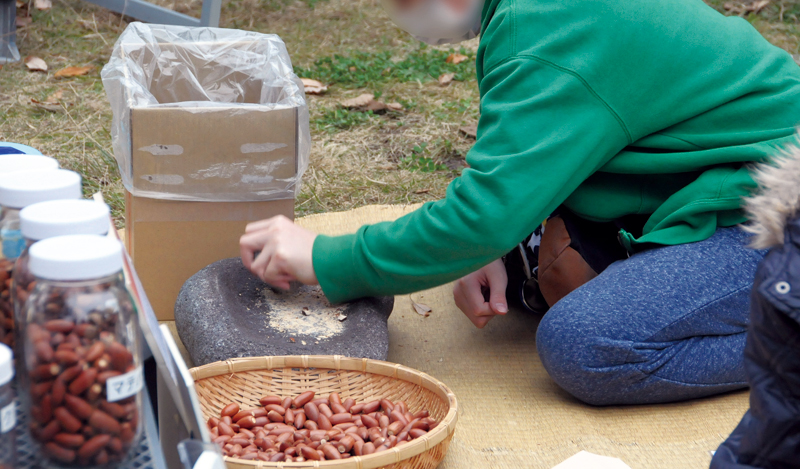 縄文人の貴重な食料だったドングリ。縄文時代と同じように、石器を使ってすりつぶして料理の下ごしらえを体験してみましょう。