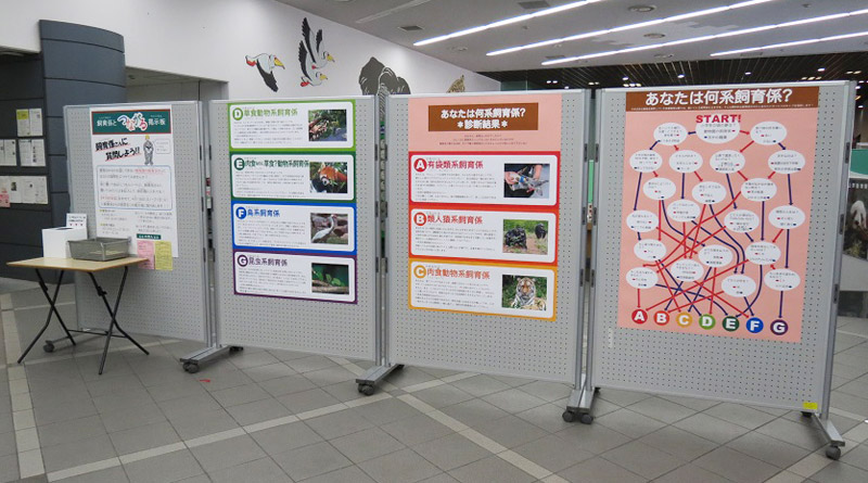 貼り出されたフローチャートの質問に答えていくと、昆虫や草食動物など、自分がどんな飼育係のタイプなのかが診断できます。
