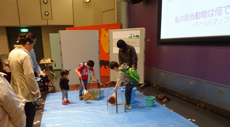 飼育係も苦戦する、小さな粒状の糞(マメ糞)掃除を体験するイベントです。