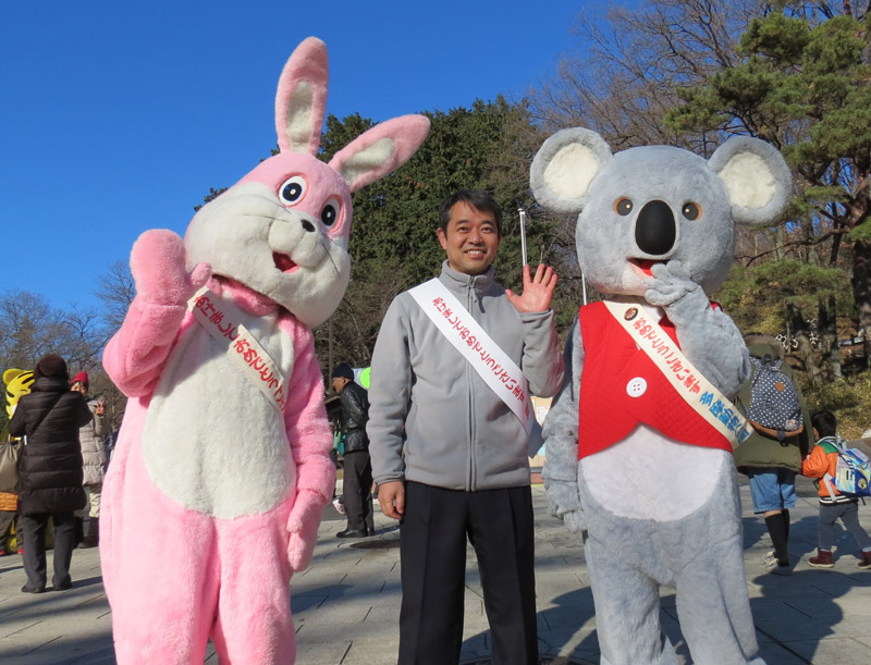 着ぐるみの動物たちと園長が、新年にご来園の皆様をお出迎えします!