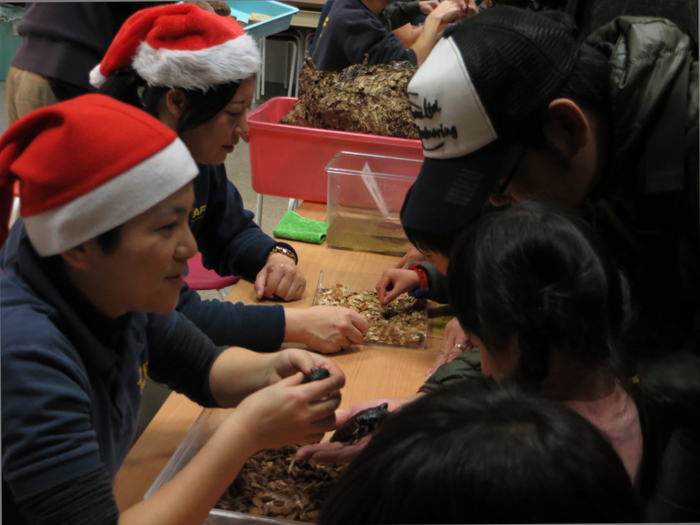 さまざまな昆虫たちと身近に触れ合ってみましょう! 触った虫について色々質問することもできます。昆虫にタッチできる、飼育担当者からのドキドキなクリスマスプレゼントです。昆虫が大好きという方はもちろん、苦手な方もぜひご参加ください。新しい発見があるかも!?