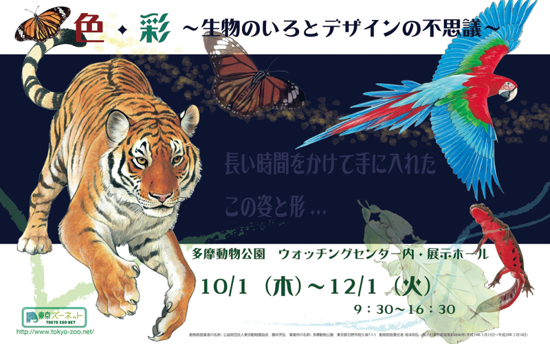 多摩動物公園では、生物の色やデザインにスポットをあて、生物のさまざまな生存戦略について知識と関心を深める企画展示「色・彩──生物のいろとデザインの不思議」を開催します。