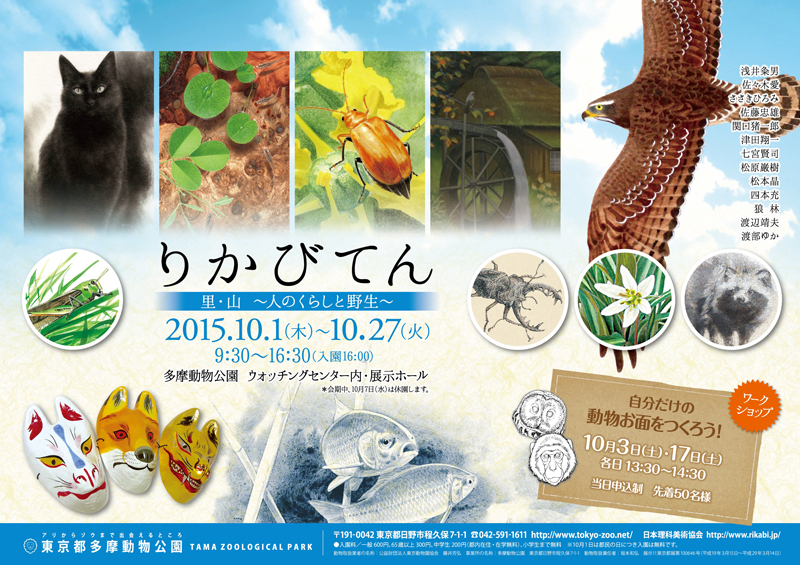 多摩動物公園では、芸術の秋にちなんで、動物に関する美術作品展を開催します。この作品展は、科学資料画や図鑑など理科系挿絵画を中心に活動している日本理科美術協会の絵画を紹介するもので、2009年から毎年開催しています。