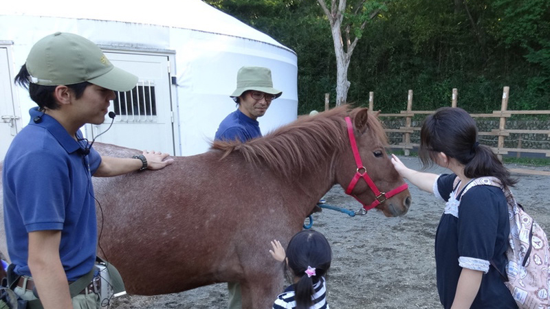 多摩動物公園で、野生馬と家畜馬の違いを飼育係がお話しし、家畜馬(道産子)とのふれあいや乗馬ができるイベントを開催します(無料)。