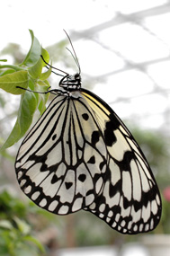 6月は梅雨のシーズンに入りますが、大温室の中では雨の日でもたくさんのチョウたちをじっくりと観察できます。蛹から羽化した後2〜3週間ほどしか生きないチョウたちは、蜜を吸ったり、交尾相手を探したりと忙しく動き回ります。運がよければオスがプロポーズする瞬間や、交尾、産卵するようすも見ることができるかもしれません。
