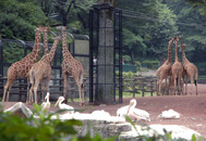 暖かくなり、キリンたちものびのびと運動場でくつろぐようになってきました。11頭いる群れでは、おとなから子どもまでキリンどうしのさまざまなやりとりを見ることができます。11時に青草のはいったゴンドラかごが到着すると、背の高いおとなたちが集まり、首を伸ばして高い場所の草を食べるようすが大迫力です。それでは、ゴンドラに届かない小さな子どものキリンはどうするのでしょう……? かんさつシートを手もとにおいて、キリンの動きや体の特徴をじっくり観察してみましょう。