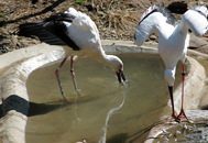 春の繁殖期をひかえ、冬のコウノトリたちはたくましさと美しさの両方を見せてくれます。寒さに震えているものは1羽もいません。コウノトリの顔は、よく歌舞伎の隈取(くまどり)のようだと言われます。それはどんな顔でしょう? コウノトリたちは、午前中を中心によく動きます。皆さんが観察する日は、どんなしぐさを見せてくれるでしょう? 毎日11時前後にえさをもらいますが、なにをどのように食べるのでしょう? 当日は、ストックエリアでくらす数十羽の若鳥や、新しいカップルができるかもしれないお見合いエリアで観察します。