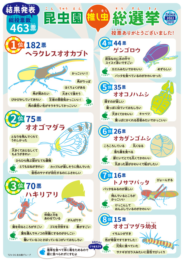 「2022年昆虫園推し虫総選挙」結果