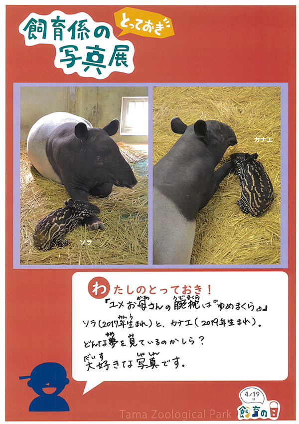 動物たちの寝小屋でのようすや動物の赤ちゃんのようすなど、飼育係ならではの秘蔵写真を手書きのコメント付きで掲示します。