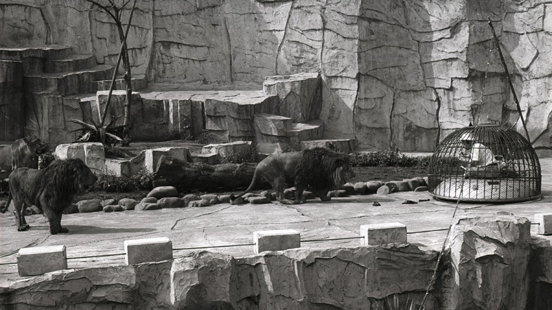 また、1980年からは当時の飼育担当者により「やぐら」が設置されて牛骨を与え始めたことで、より近くでライオンを見ることができるようになりました。