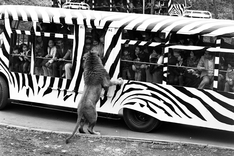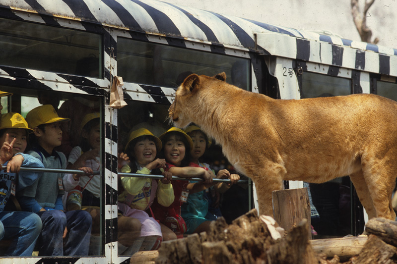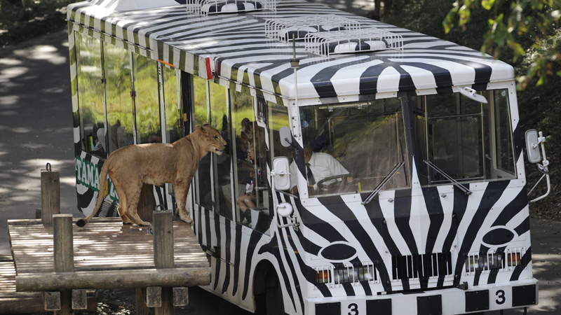 小さいころに乗ったライオンバス。「獅子の咆哮(鳴き声)」にドキドキ、鉄板で補強されたバスや重厚な扉の開閉にワクワク。バスが走り出して小停止。すると、目の前にライオン‼