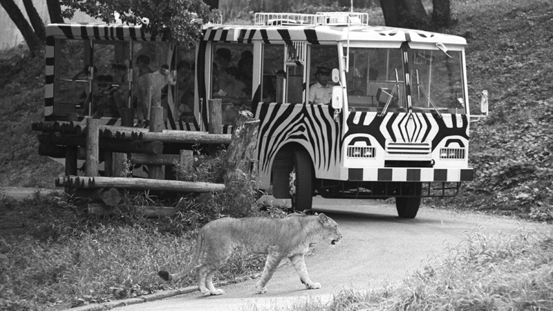 計画の段階で多くの反対があったため、1963年に上野動物園で檻をかぶせた子ども用自動車の中に職員が入り、ライオンの反応を確認する実験がおこなわれました。ライオンの習性なども踏まえ慎重に検討され、ライオンバスの運行が決定しました。