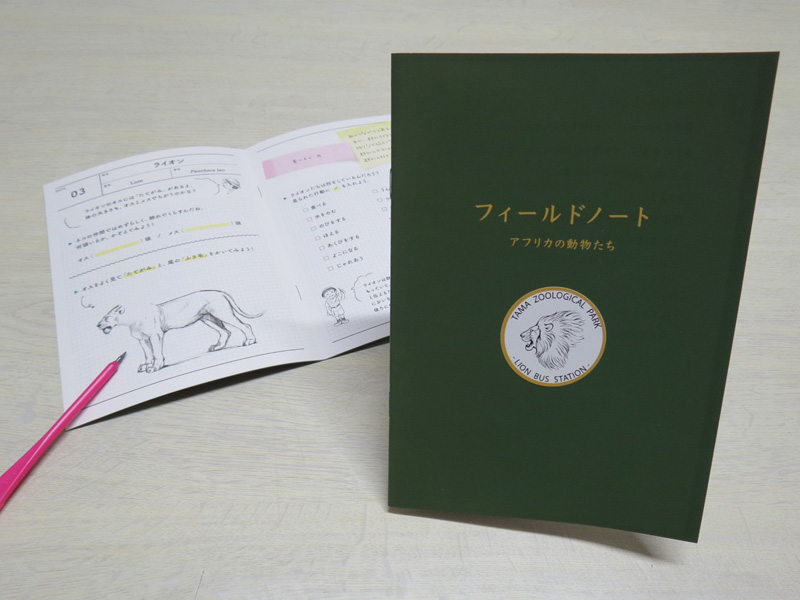 野生動物の研究者は、野外調査のときにいつもノートを持ち歩き、スケッチをしたり、気がついたことを書き残したりします。このようなノートのことを「フィールドノート」といいます。みなさんも、動物の研究者になったつもりでアフリカ園の動物(チンパンジー、キリン、ライオン、アフリカゾウ、フラミンゴ)を観察にでかけましょう。