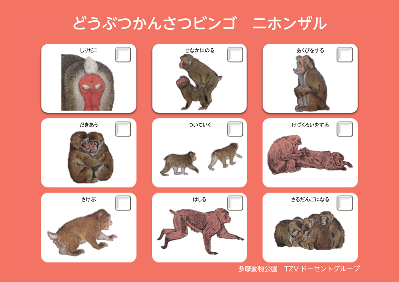 1月のかんさつビンゴ(ニホンザル)