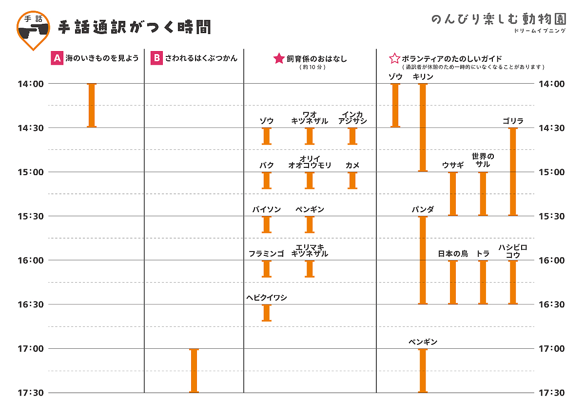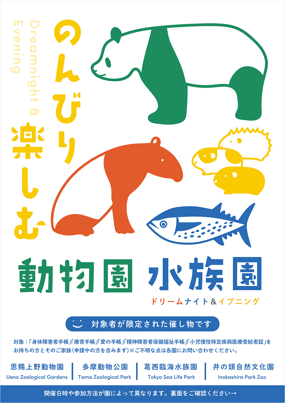 「のんびり楽しむ動物園水族園 ドリームナイト&イブニング」を開催します。聴覚障害者への手話対応などもおこないます。この機会に園内をごゆっくりお楽しみください。