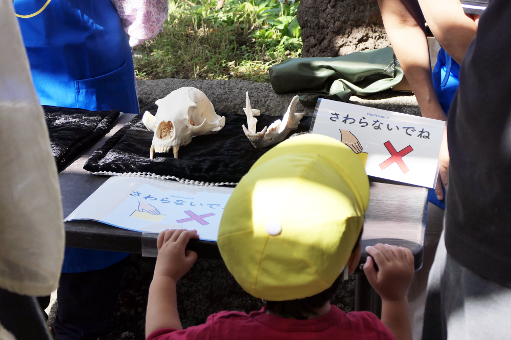 スポットガイドでは、動物を観察しながらクイズやビンゴに挑戦したり、標本や模型などによる解説を聞いたりして、動物についてさらに深く学ぶことができます。