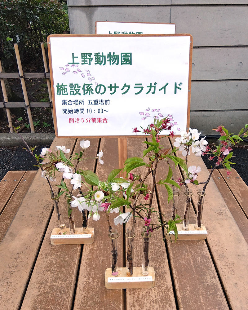 上野動物園では、サクラの開花時期に合わせたイベントとして、日ごろ園内の樹木管理を担当する職員がガイドツアー形式でサクラの解説をおこなう「施設係のサクラガイド」を開催します。