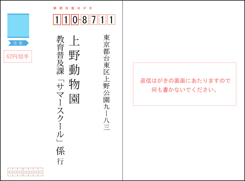 - 見本のとおりに正しく往復はがきを書いていただけない場合や料金不足がある場合、無効となり返信ができません。