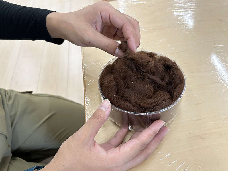 ふたば牧場の人気者、アルパカの毛の標本にさわれるコーナーができました! アルパカの毛がどれくらいふわふわしているか、ぜひさわってみてください。