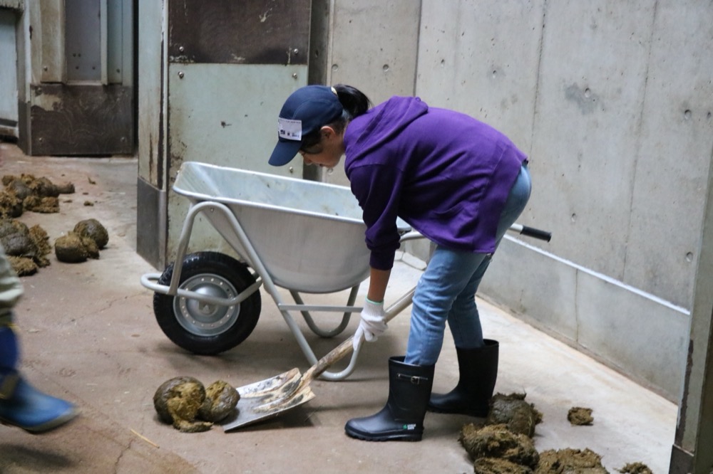 2019年の参加者がアジアゾウの糞を掃除するようす