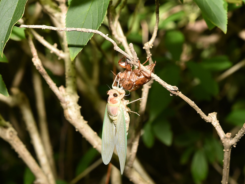 園内の不忍池周辺は、野生のセミとコウモリの絶好の観察スポットです。セミの幼虫が地中から出てきて木に登り羽化するようすや、夕暮れから夜空を飛び始めるコウモリのようすをご覧いただけます。