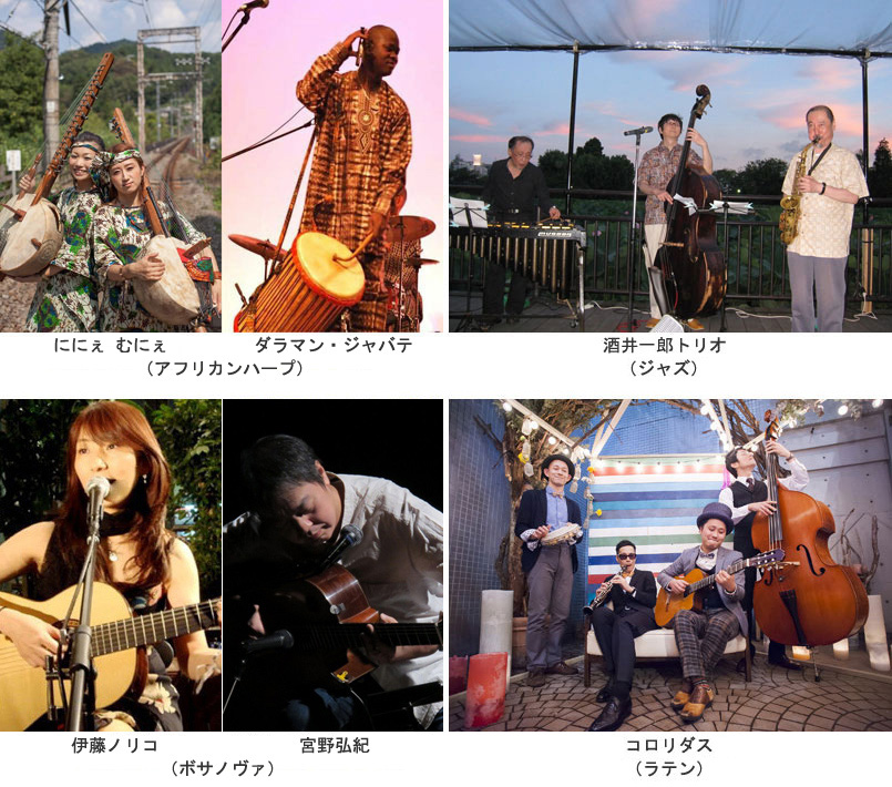 夕涼みをしながら生の演奏に浸れる音楽ライブを開催。水面を渡る涼風が心地よい環境で、クールな音楽と冷たいビールをどうぞ。