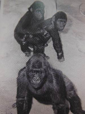 ゴリラは、今から60年前の1954年12月23日、「日本動物園」という大規模な巡回動物園のために初めて来日し、翌年(1955年)の1月から福岡での興行でお目見えしました。その3年後の1957年11月には、上野動物園に3頭のゴリラが来園しました。