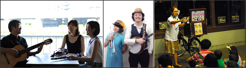 笹子重治(G)、江藤有希(Vn)、黒川紗恵子(Cl)による、楽しくてどこか懐かしいシアワセ音楽。