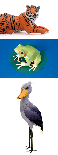 1971年、宮城県生まれ。1994年、多摩美術大学デザイン科卒業。1997年、「Kei Craft」として作家活動開始。動物を中心に、恐竜、家電製品、キャラクターなど、さまざまなモチーフによるペーパークラフトを創作。作者のサイトの「ごあいさつ」によれば、「見た人手にとった人が、思わずニコッと微笑んでしまうような気持ちを想ってかたちにしました」とのことです。