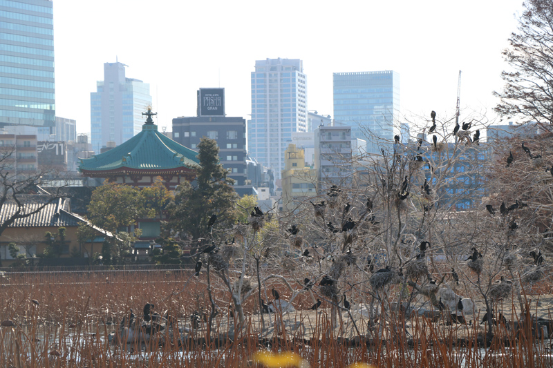 不忍池に生息する野生のカワウ