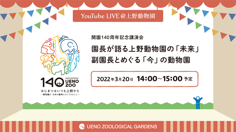 上野動物園では、開園140周年を記念し、開園記念日である3月20日にオンライン講演会「園長が語る上野動物園の『未来』 副園長とめぐる『今』の動物園」を開催します(記念企画について