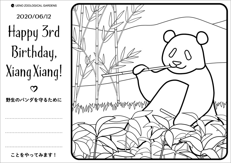 そして今回大切なことは、色をぬるだけでなく、野生のジャイアントパンダを守るために自分たちに何ができるか宣言してみてください。完成した用紙を撮影し、ハッシュタグ「#シャンシャン3歳おめでとう」をつけてTwitterに投稿しましょう!