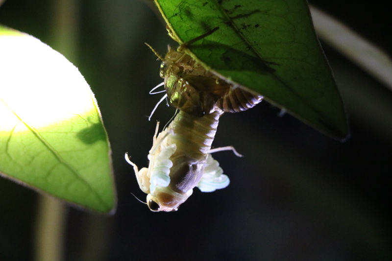 園内の不忍池周辺は、野生のセミとコウモリの絶好の観察スポットです。セミの幼虫が地中から出てきて木に登り羽化するようすや、夕暮れから夜空を飛び始めるコウモリのようすをご覧いただけます。