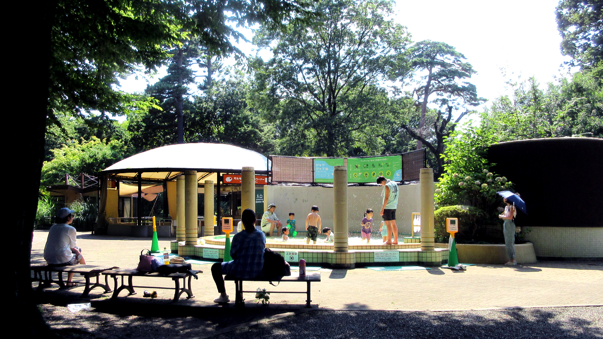 井の頭自然文化園には、小学校低学年以下のお子さんを対象とした、水深20cmほどの水遊び場