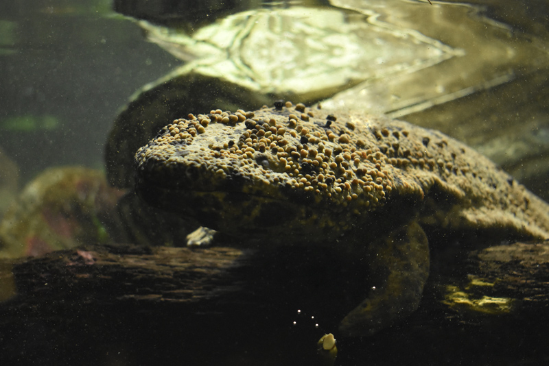 井の頭自然文化園では、2021年7月に水生物園(分園)の水生物館で飼育していたオオサンショウウオが死亡してから展示が途絶えていましたが、このたび新しい個体が来園しました。