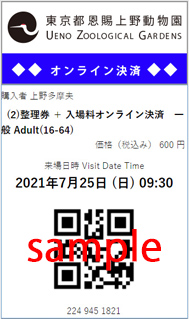 2. オンラインチケットは日付指定の入場券です。なお、整理券による入場制限実施中については日時指定(日付と入園時間帯の指定制)となります。