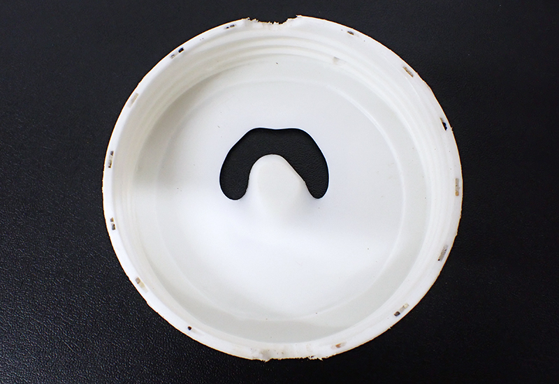 試運転で穴が開いてしまったプラスチック製の皿
